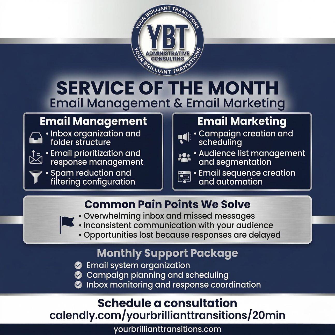 If your email marketing currently feels inconsistent or unstructured, this is the right time to address it. The way your business communicates should reflect the same level of organization and intention as the rest of your operations. When your email marketing is structured, your communication becomes clearer, your message becomes more consistent, and your business is better positioned to grow. Let us help you create structure with your email marketing, schedule a Strategy Fit Call using the link below:
