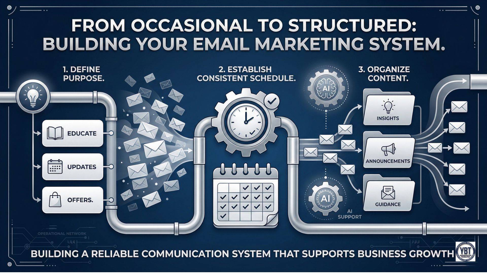 Sending emails occasionally may keep your business visible, but structure is what allows your communication to remain consistent, clear, and effective over time.