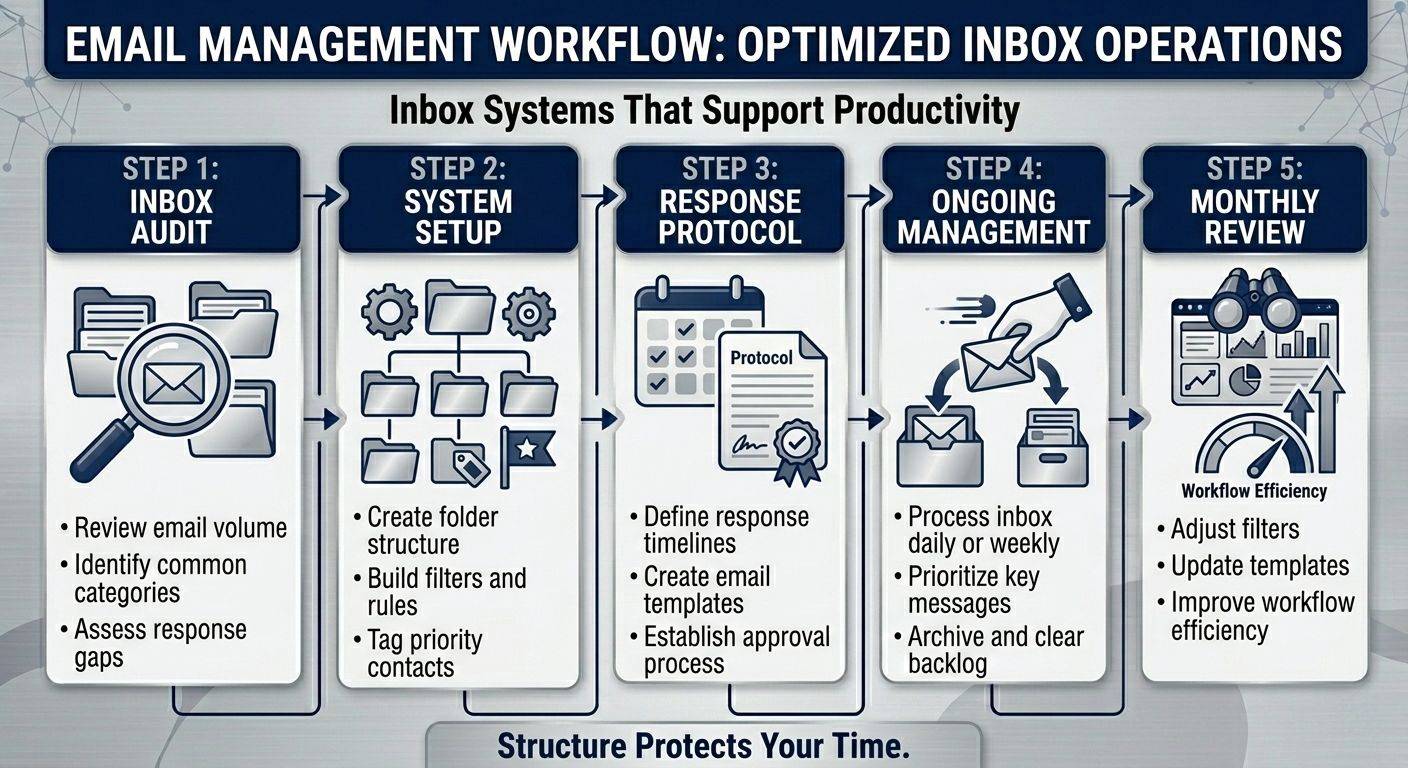 An inbox does not need to be empty. It needs to be organized. When your email is structured intentionally, you spend less time searching and more time executing. That shift protects both time and revenue.