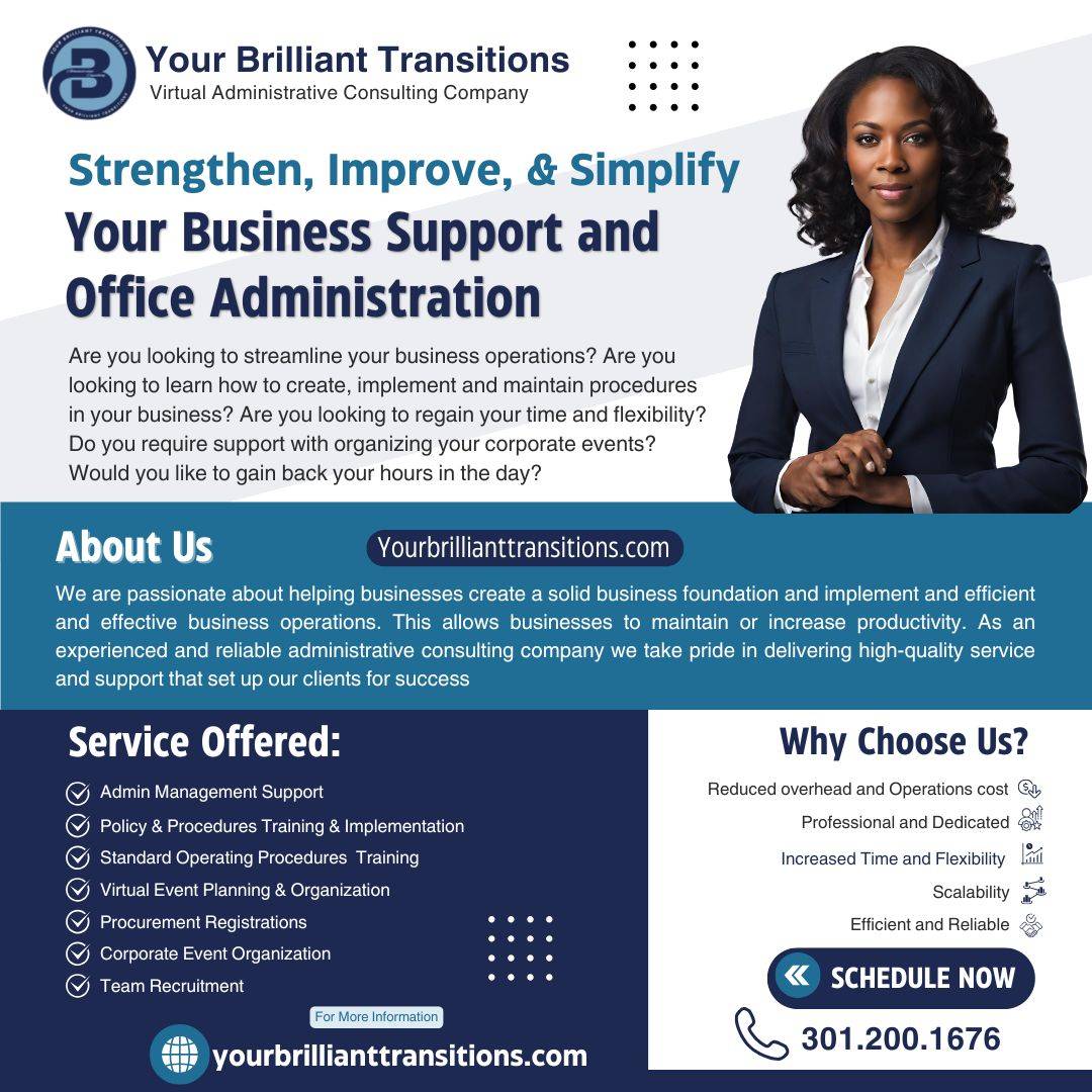 Brilliant Transitions Administrative Insight Newsletter is your business resource that assists you in navigating the day to day know how of having a well equipped and structured business operation. This newsletter provides a wealth of valuable information, strategies, and best practices your business.